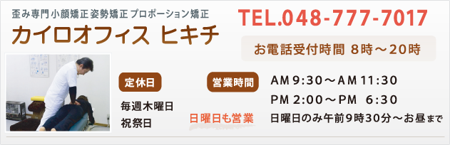 通常一回10,000円(頚椎、脊椎矯正、骨盤矯正セット) 小顔美矯正のみの場合は6,000円。 初回のみ初見料3,000円が掛かります。 矯正は15年以上のキャリアをもつ専門女性スタッフが行います。 |