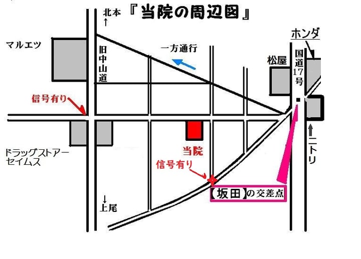 当院は、道路沿いに面していて看板も出ていますので直ぐに見つかると思います。